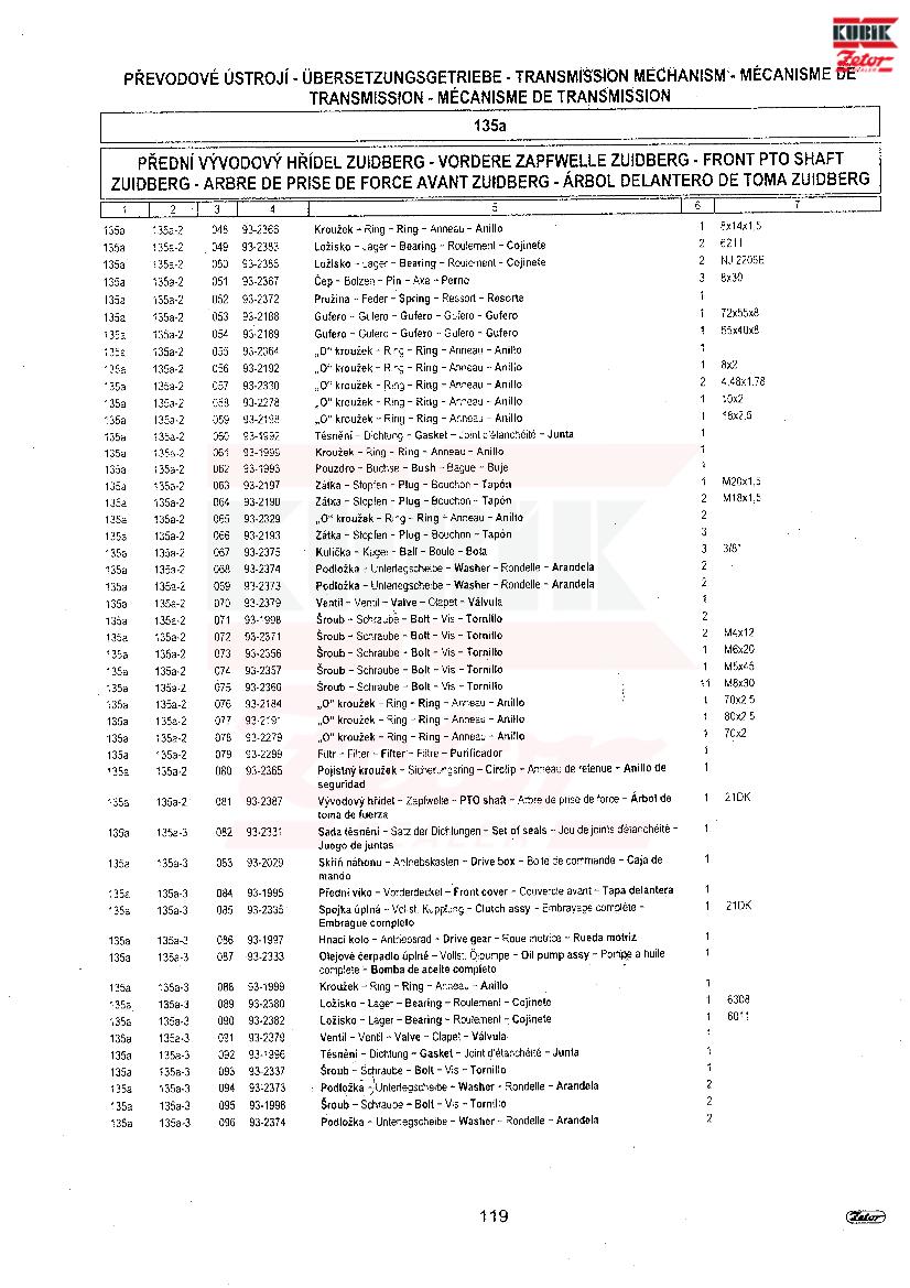UŘ III + FORTERRA > Forterra_95-125 > rejstřík > PŘEDNÍ VÝVODOVÝ HŘÍDEL ZUIDBERG >
