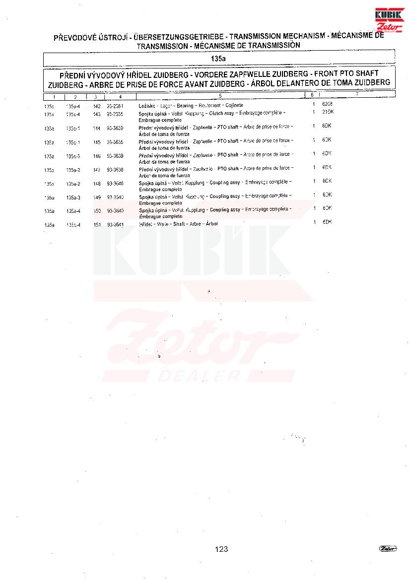 UŘ III + FORTERRA > Forterra_95-125 > rejstřík > PŘEDNÍ VÝVODOVÝ HŘÍDEL ZUIDBERG >